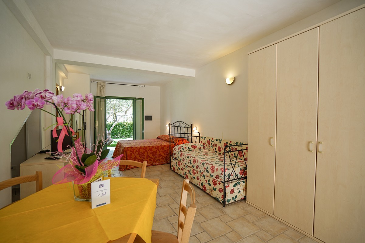 Le camere possono ospitare da 1 a 6 persone; disponibili anche le camere economy, ideali per due persone, con piccola finestra alta, senza patio esterno.