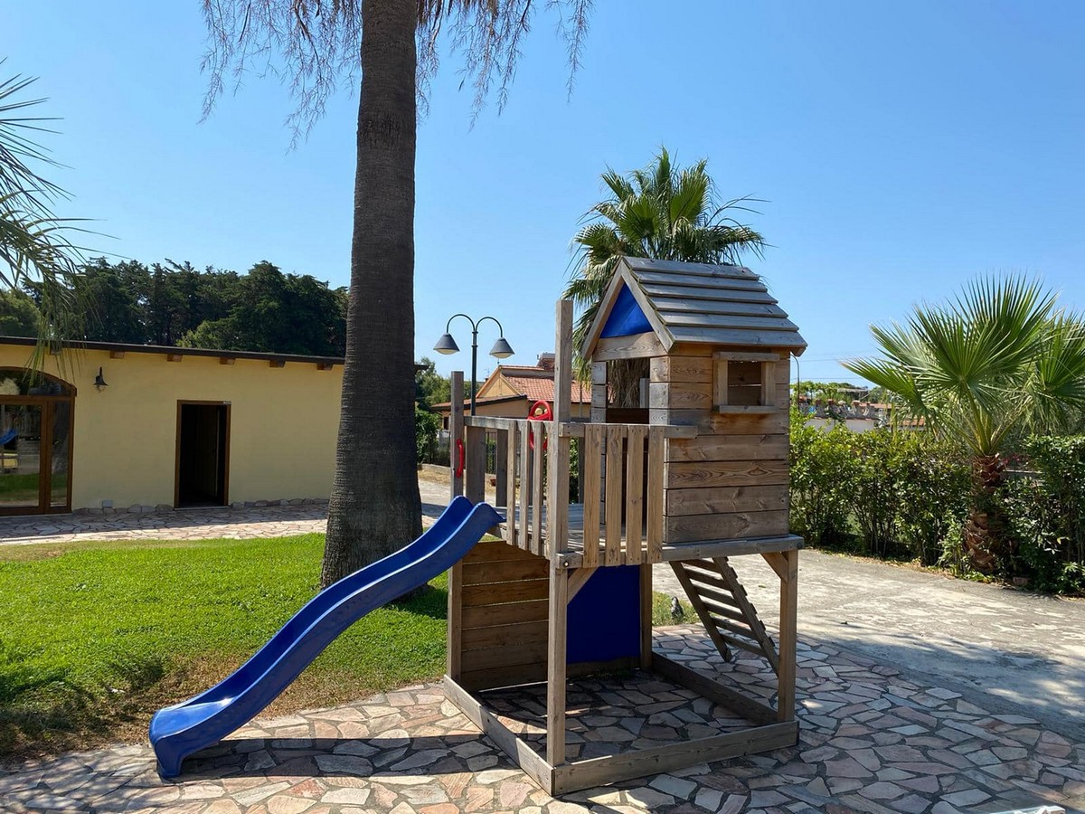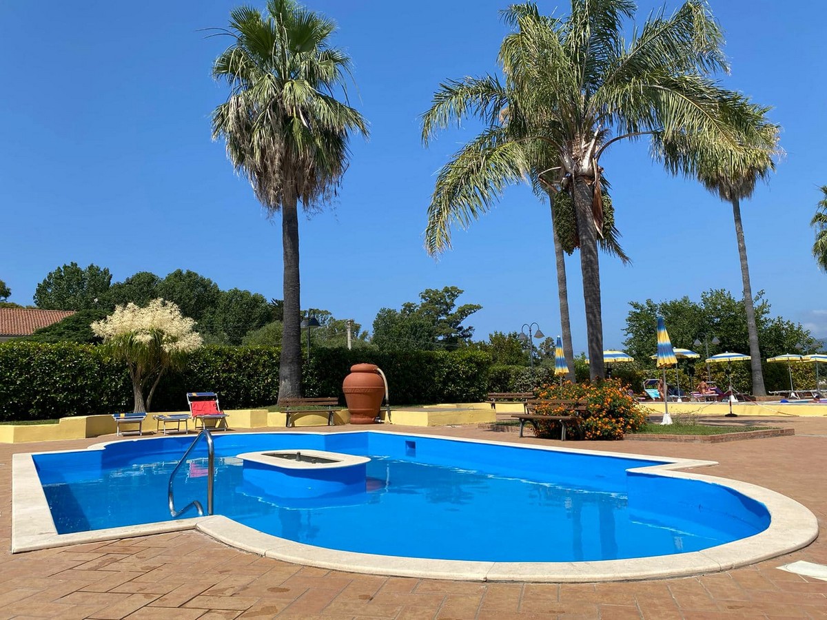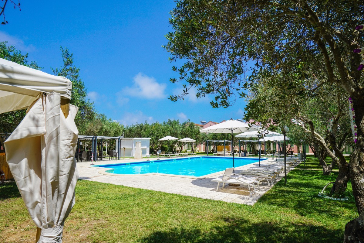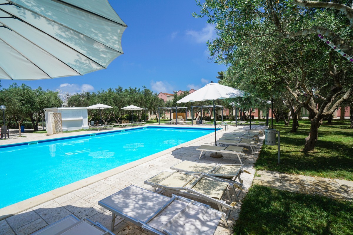 A soli 300 mt dalla struttura si estende l’ampia spiaggia privata di sabbia fine e dorata, attrezzata con ombrelloni sdraio e lettini.
